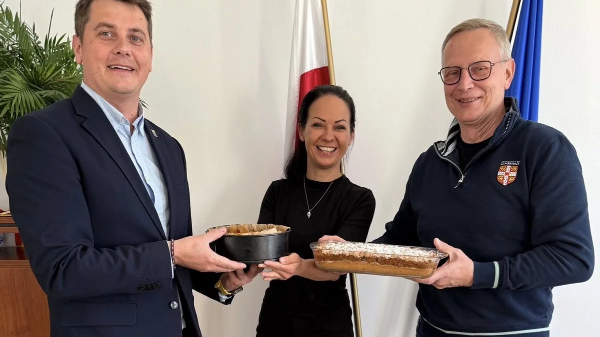 Zwycięzcy licytacji zaskoczyli też burmistrza, bo przynieśli w prezencie sernik, którego samorządowiec skosztował.