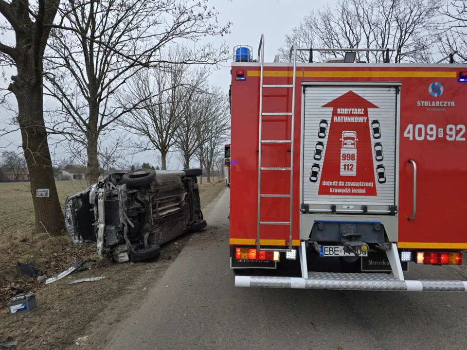 Wszystko wydarzyło się w niedzielę, 23 lutego, w miejscowości Łęki. Tam chwilę przed południem samochód osobowy, którym podróżowały dwie osoby, wypadł z drogi i zatrzymał się na poboczu, przewrócony na bok.