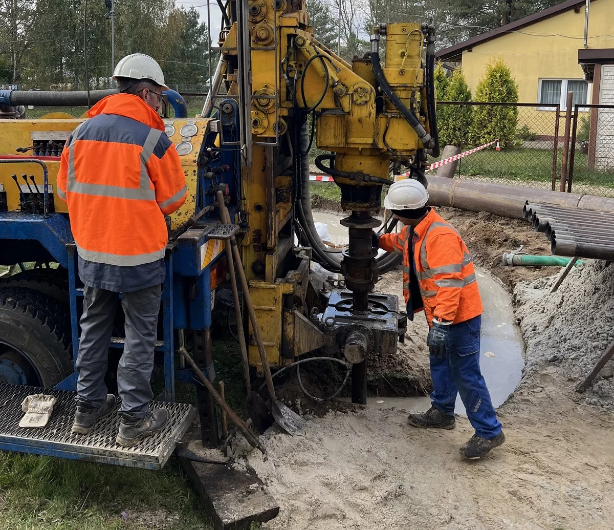 Obecnie trwają prace wiertnicze przy budowie jednej z dwóch studni o głębokości około 80-90 metrów.